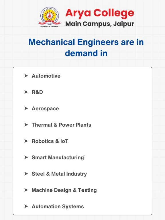 Discover the advantages of a Mechanical Engineering degree at Arya College Jaipur. Explore career opportunities, top recruiters, salaries & why it’s a top choice for engineers.